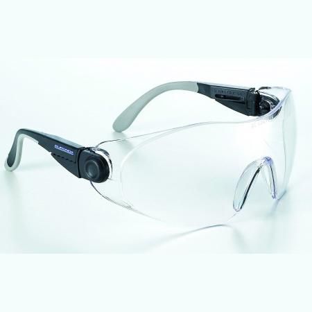 Gafas para operador y paciente con monolente esférica en policarbonato ópticamente controlada, que ofrece un campo visual de 180°. Las varillas, regulables en longitud e inclinación, son de material sobreimpreso que garantiza un excelente ajuste y confort. Puente nasal en policarbonato. Las lentes neutras incoloras antiarañazos y antiempañamiento protegen de impactos y de los rayos UV. Peso: 36 gramos