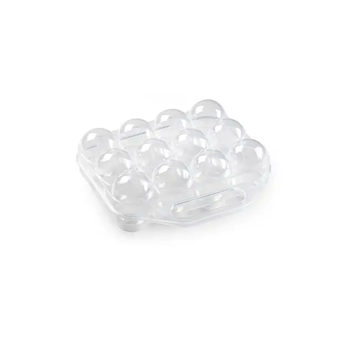 Huevera transparente cuadrada fabricada con plástico de alta calidad. Con cierre. Capacidad para 12 huevos.