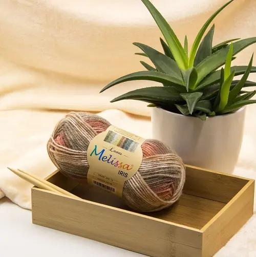 Lana Iris de hilo 100% Acrylic Platinum para tejer. Cada unidad pesa aprox 60 gramos y tiene una longitud de aprox 174 metros.